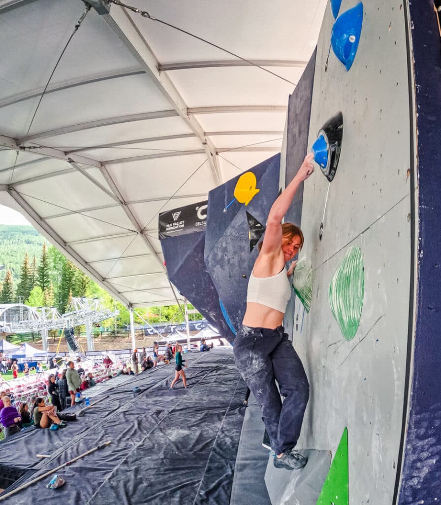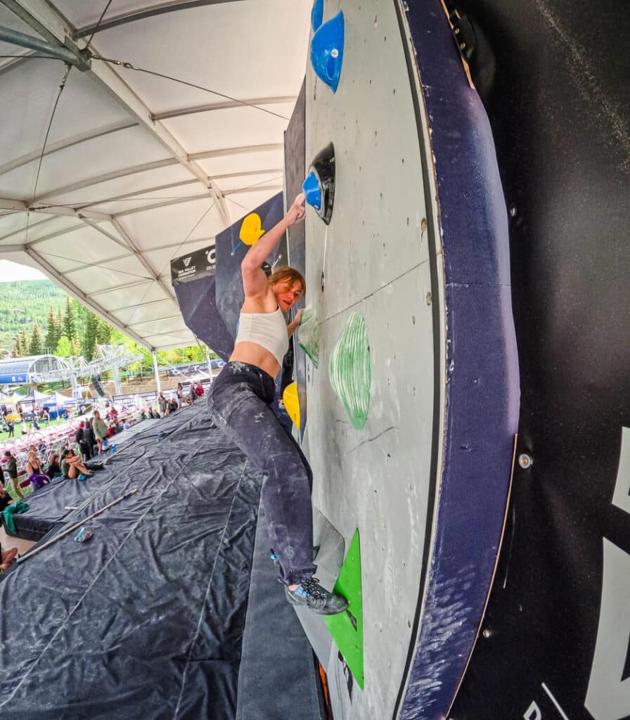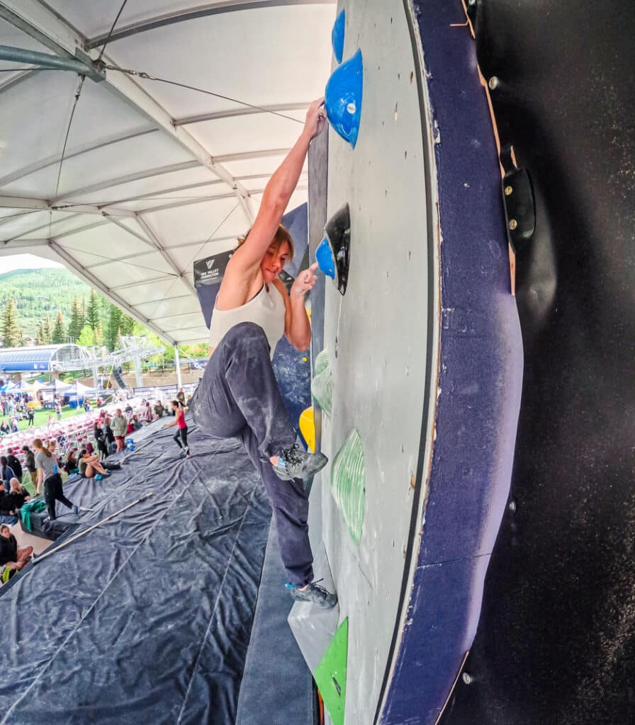 • Climbers may discuss beta in between attempts. No beta can be given to climbers when they are on the wall. Climbers may also watch the other competitors’ attempts to learn about the climbs.