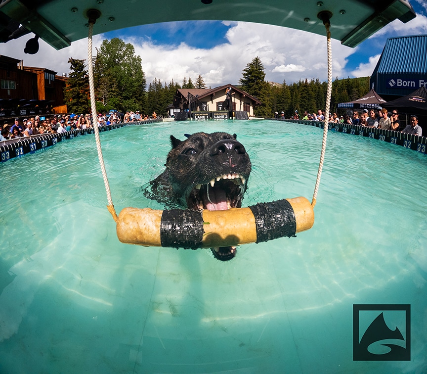 Pro Plan Speed Retrieve is a timed event that involves the K9 athlete jumping off the dock and swimming to a toy positioned at the far end of the pool. Once the dog retrieves the toy, the clock stops and the pup with the fastest time takes the prize.