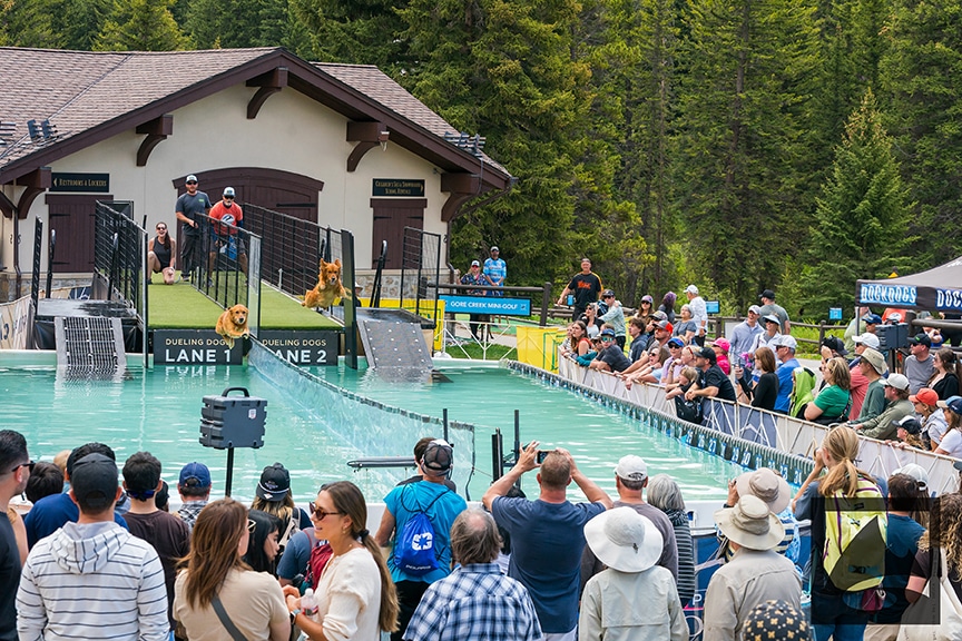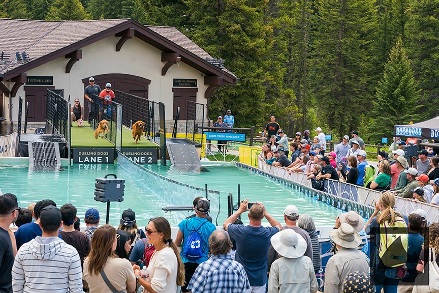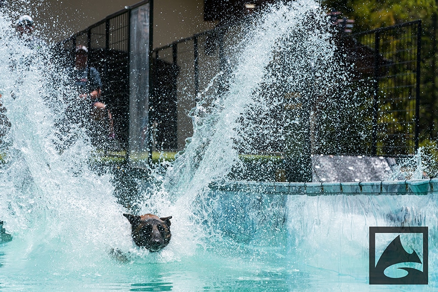 Think of it as a high-energy street race—Pro Plan Dueling Dogs puts paws to pavement with a thrilling dock-to-pool competition. When the signal drops, both dogs leap off the dock and sprint through the water to snatch a toy floating at the far end. The first pup to grab it and make it back to shore takes the win!