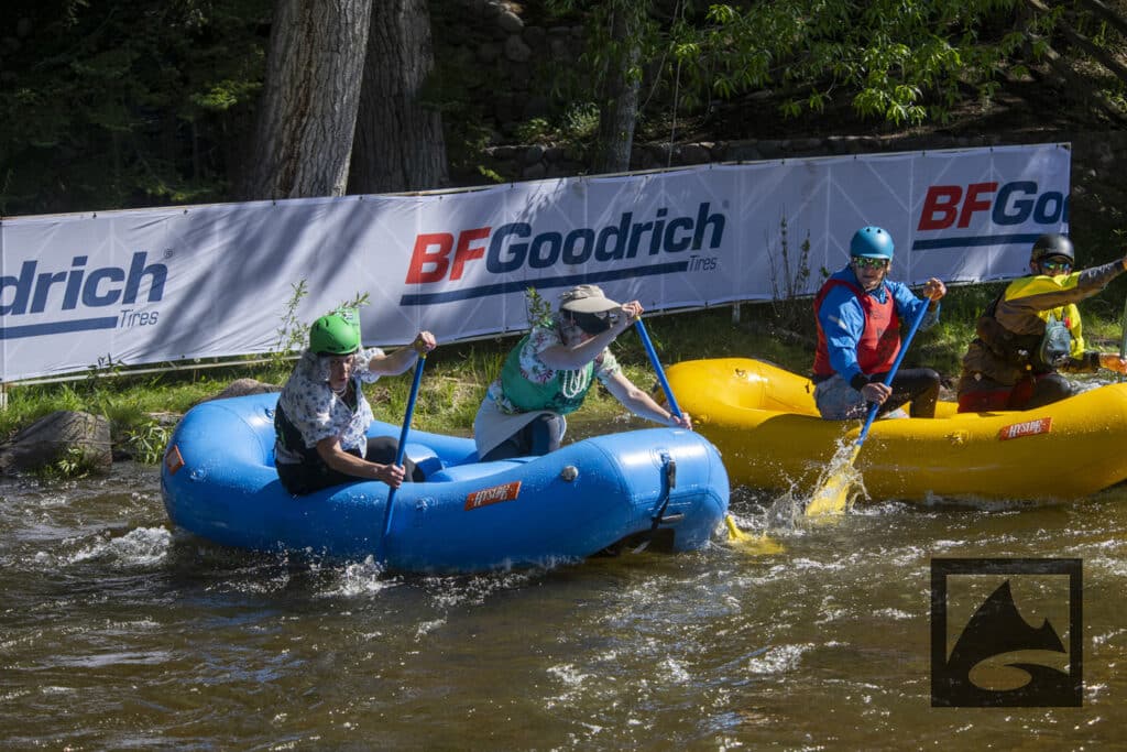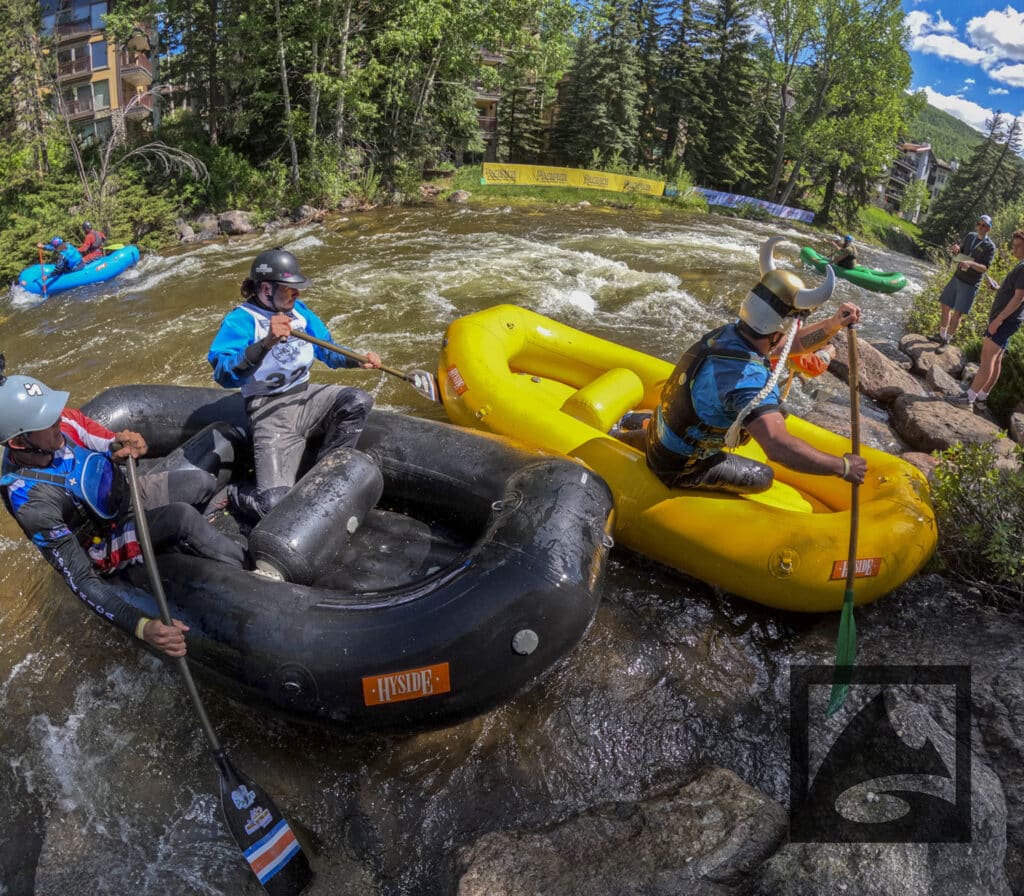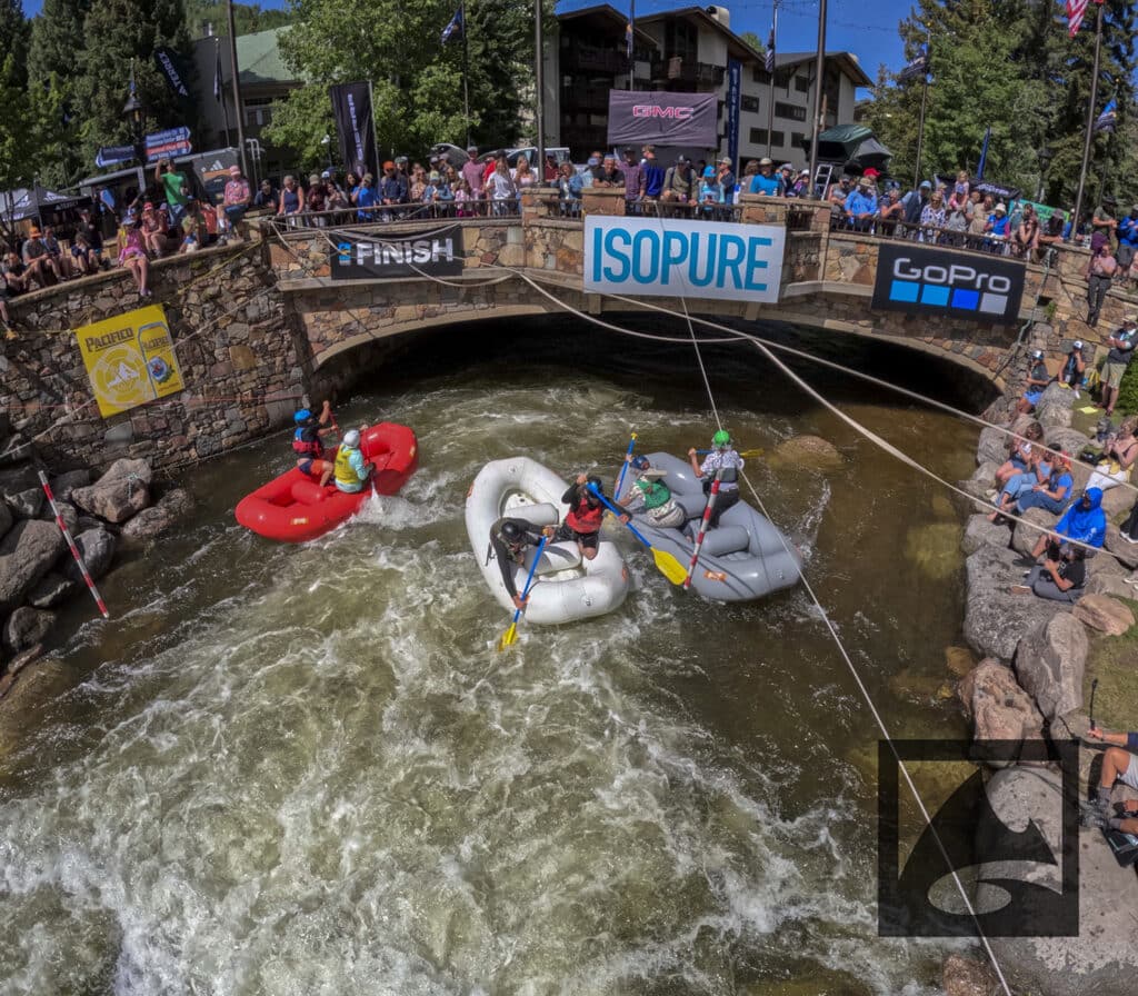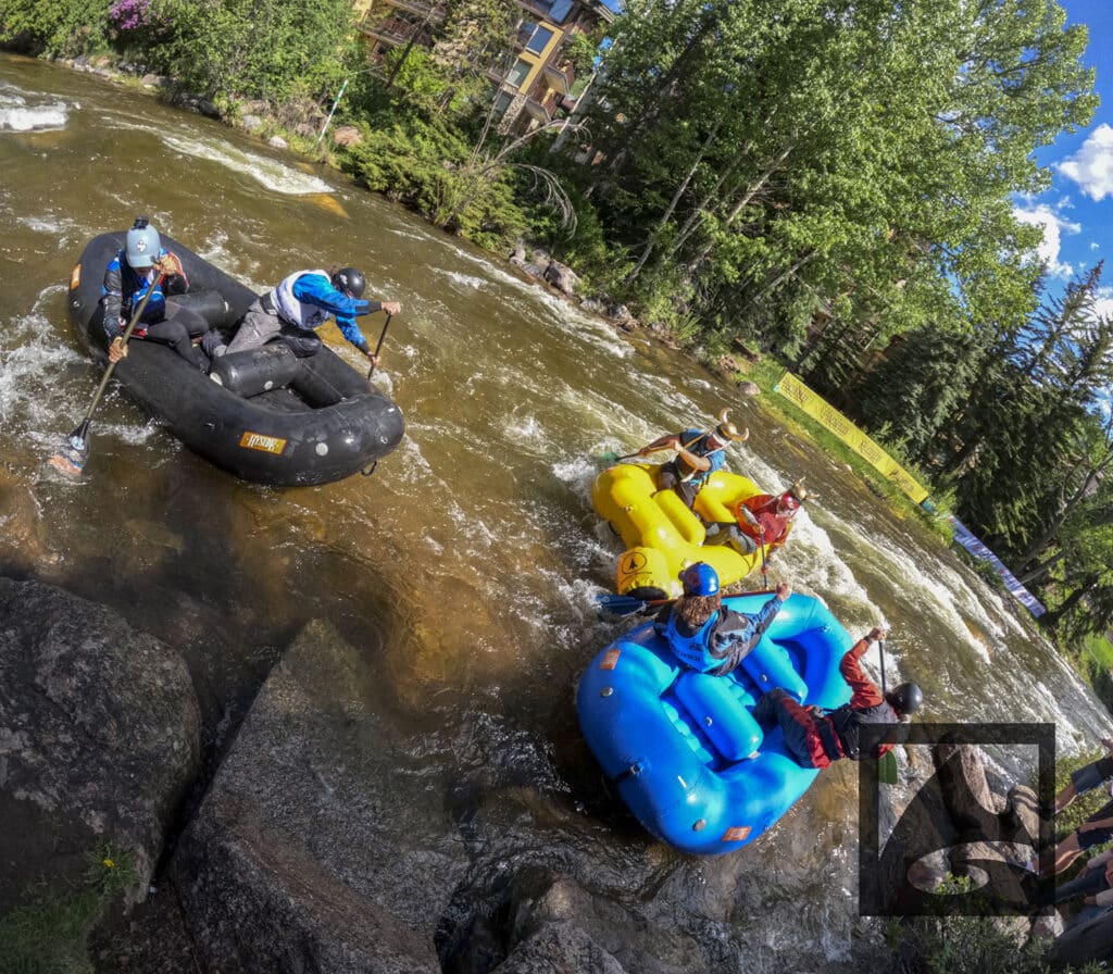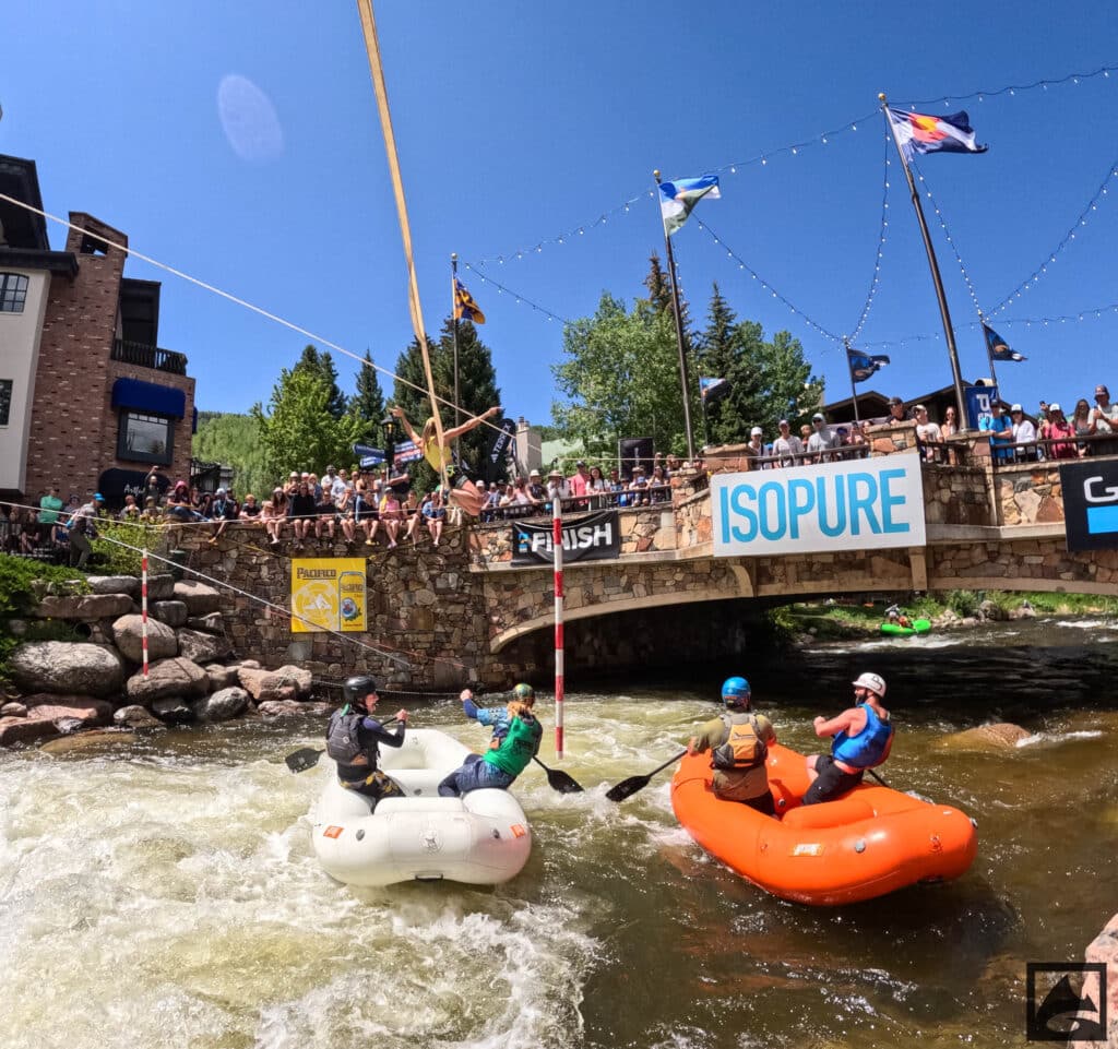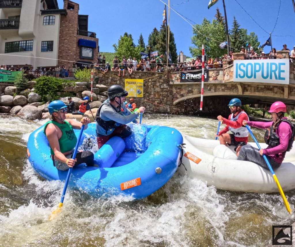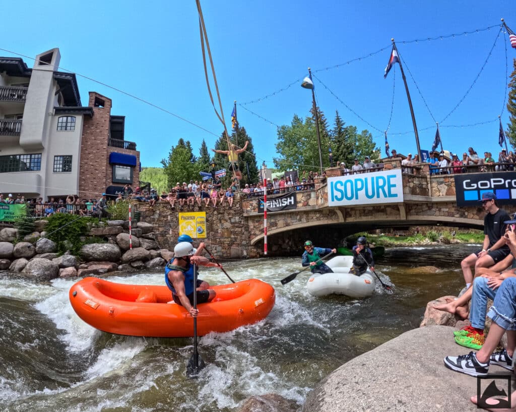 The Pacifico Raft Cross is a raft race (two person rafts) on the Class II / III whitewater of Gore Creek in Vail Village. Two person teams will have a chance to showcase their speed, agility, and aggression in a timed qualifying run through the heart of Vail Village on Gore Creek. Teams will then be placed in “race pods” of no more than three teams to go head-to-head in the Vail Whitewater Park (1/10th of a mile). The winner(s) advance to the next round. Along the way, rafters will have to navigate no less than 2 upstream gates and don’t forget, RAMMING IS ALLOWED.